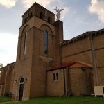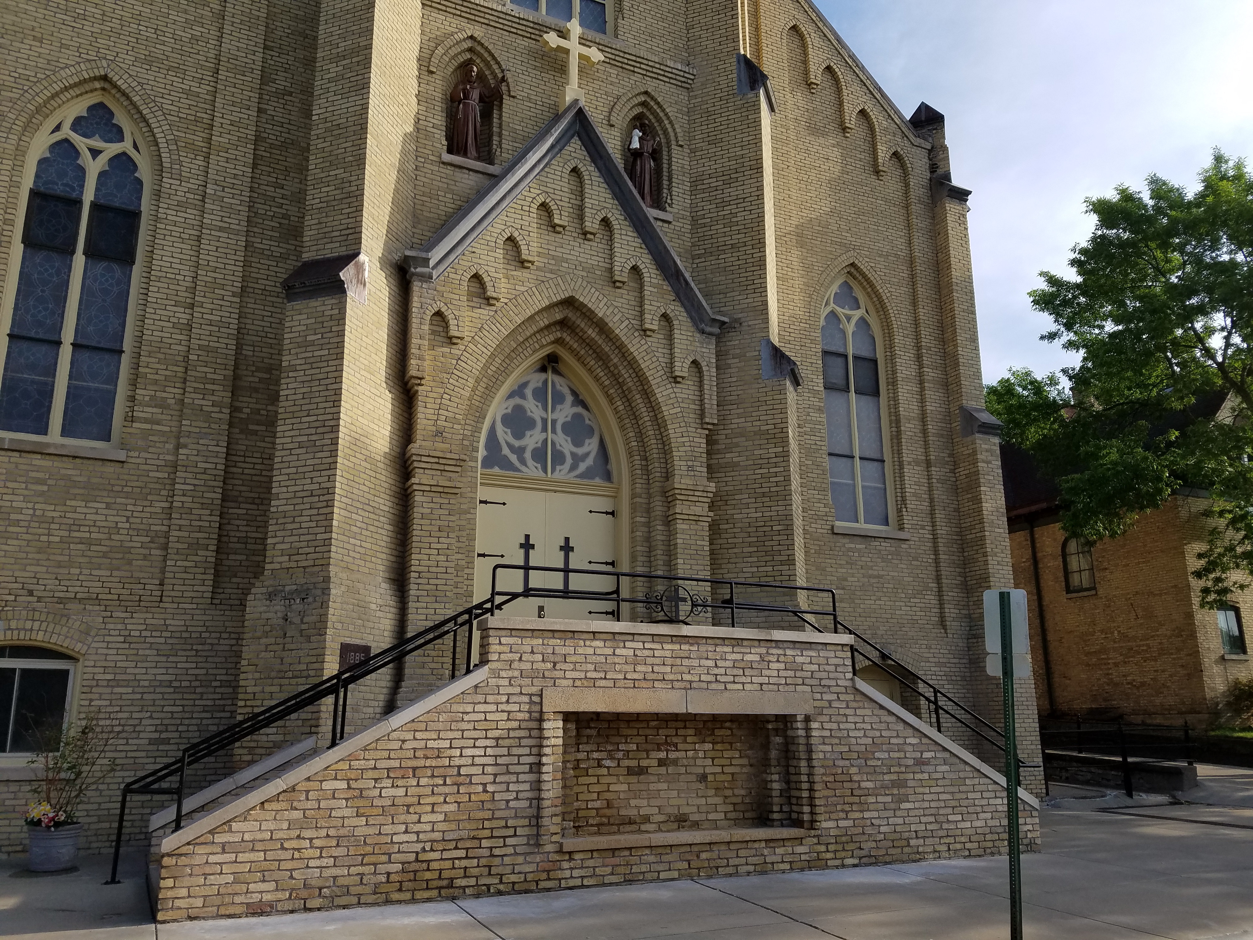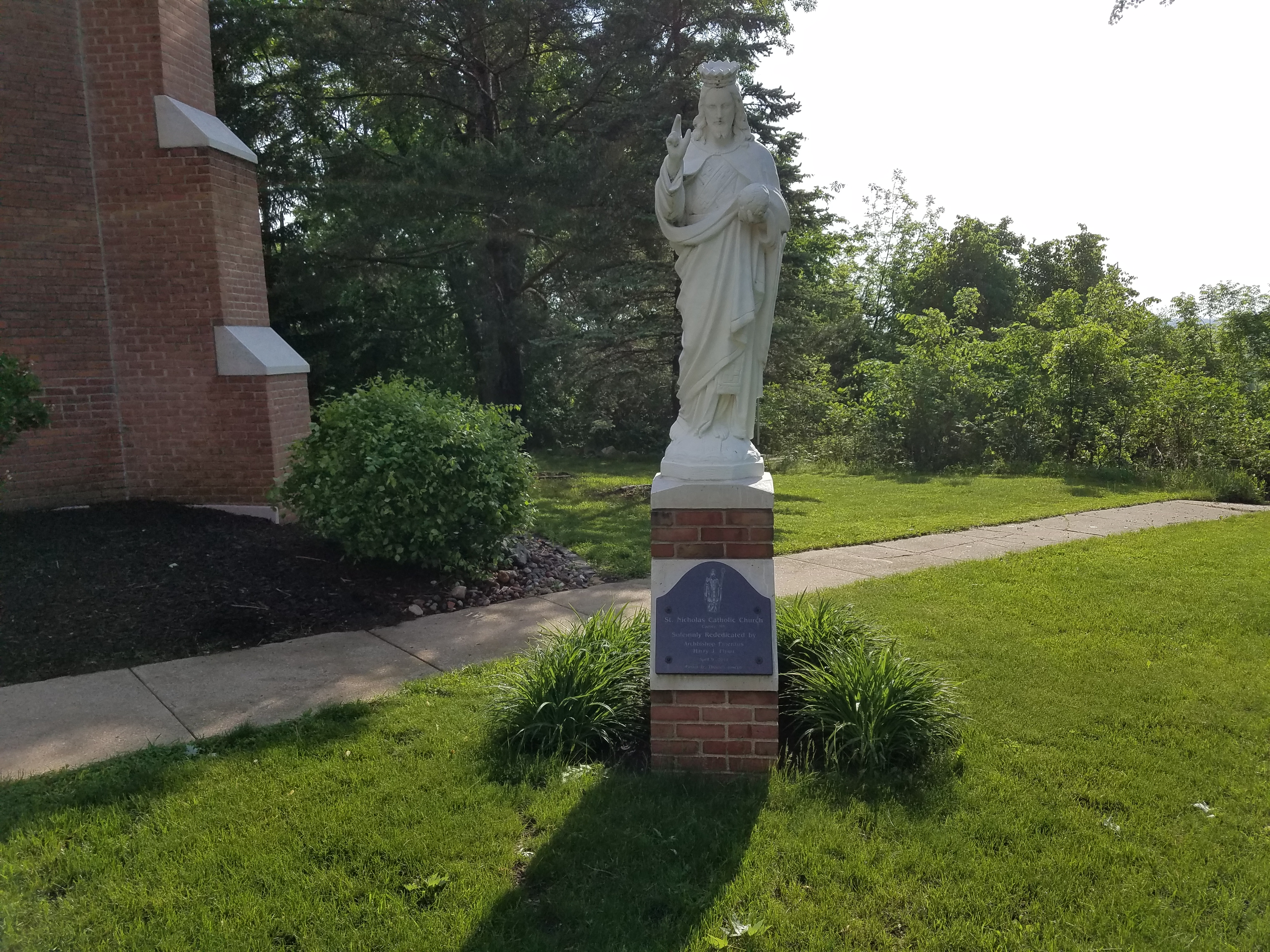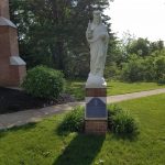 Statue Setting Refurbished and set on newly built base.. Both statues were refurbished and reset. 10 foot tall angel statue